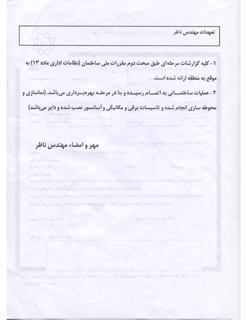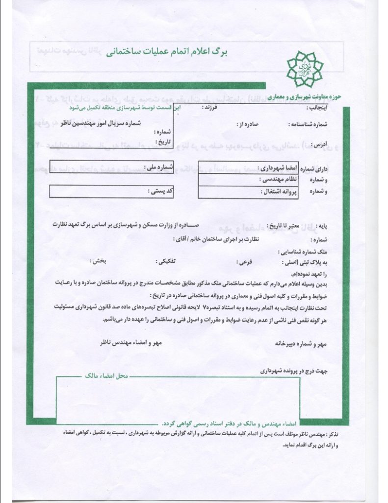 برگ سبز تعهد نظارت مرحله اتمام عملیات